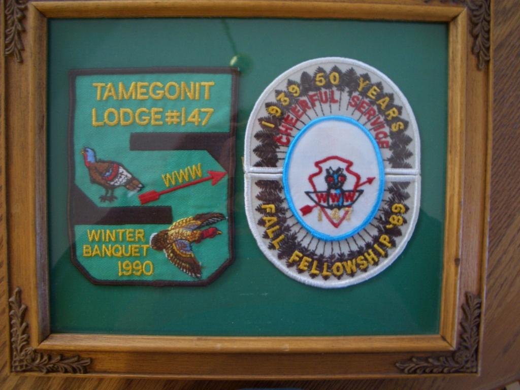 At the conclusion of the Lodge’s 50th Anniversary, the 1990 Winter Banquet, a silent auction was held for the sale of a framed set of the X1 and accompanying event patches. Lodge member Bob Norris won the set for approximately $50 and still has it today.