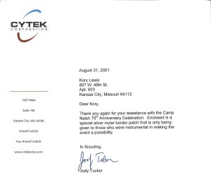 The neckerchief is a standard-issue Boy Scout neckerchief with a stencil/block print on top. It could have been made on site and available to the boys or possibly made by a troop to wear during the event. I’ve never seen an item similar to this but would enjoy seeing a picture of yours if you have one.